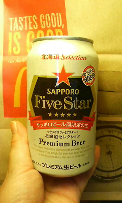 写真は缶ビールでは珍しい生ビール。サッポロファイブスターです