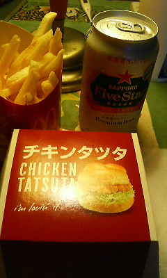 今日の夕ごはんは、復活のCMを観てから楽しみにしていたマックのチキンタツタセットにしました